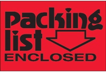 2 x 3" - "Packing List Enclosed" (Fluorescent Red) Labels