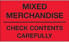 2 x 3" - "Mixed Merchandise - Check Contents Carefully" (Fluorescent Red) Labels