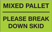 3 x 5" - "Mixed Pallet - Please Break Down Skid" (Fluorescent Green) Labels