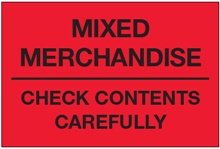 3 x 5" - "Mixed Merchandise - Check Contents Carefully" (Fluorescent Red) Labels