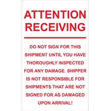 6 x 10" - "Attention Receiving - Do Not Sign For This Shipment" Labels