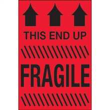 4 x 6" - "This End Up - Fragile" (Fluorescent Red) Labels