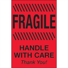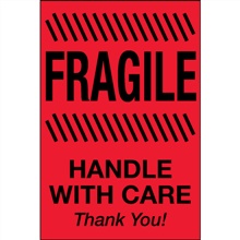 2 x 3" - "Fragile - Handle With Care" (Fluorescent Red) Labels