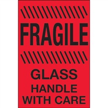 3 x 5" - "Glass - Fragile" (Fluorescent Red) Labels